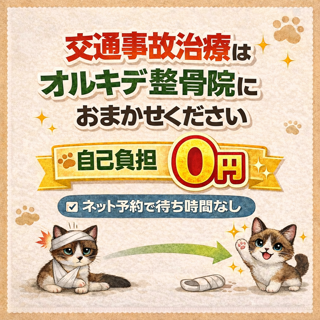 ネット予約があるので待ち時間なしで施術が受けられます。交通事故治療の治療費は加害者側か自身で加入している保険の保険会社が支払うので自己負担は0円です。