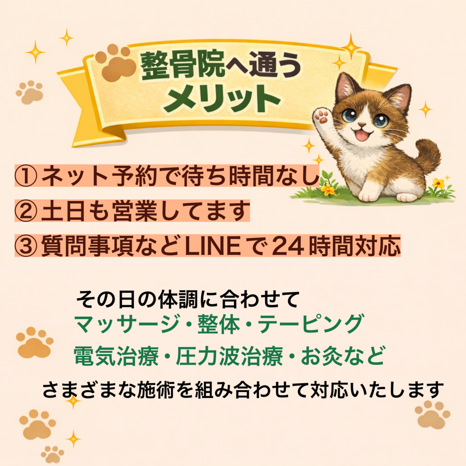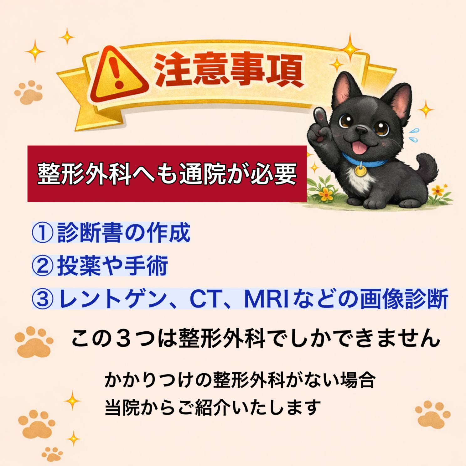 最後に1番大事なのが整形外科にも必ず通院してもらいます。最低でも月に1度は必ず整形外科へ行ってもらいます。